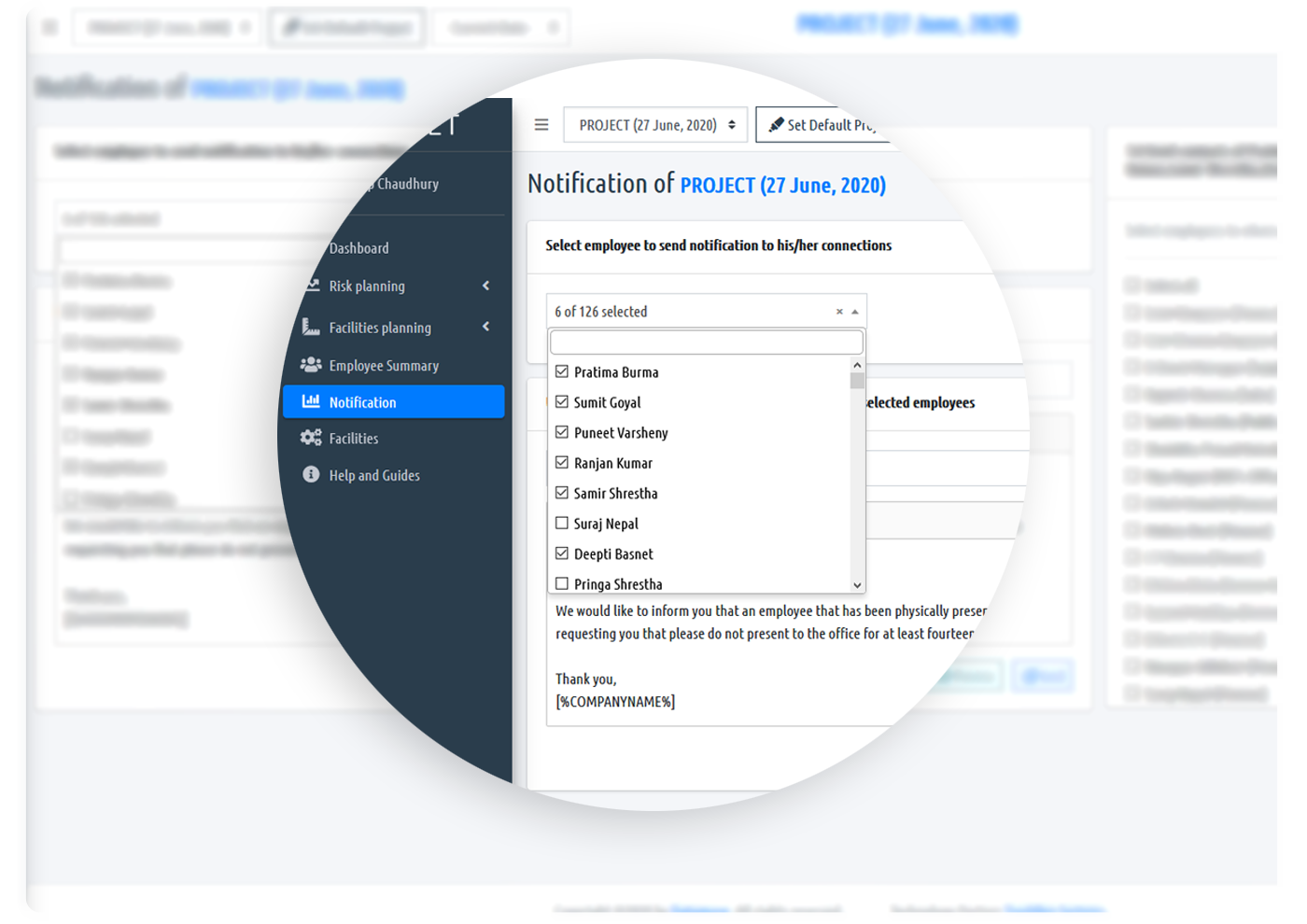 RESET enrolls staff by registering their names, departments, people they work in physical proximity, and criticality of the work relationships for business continuity.