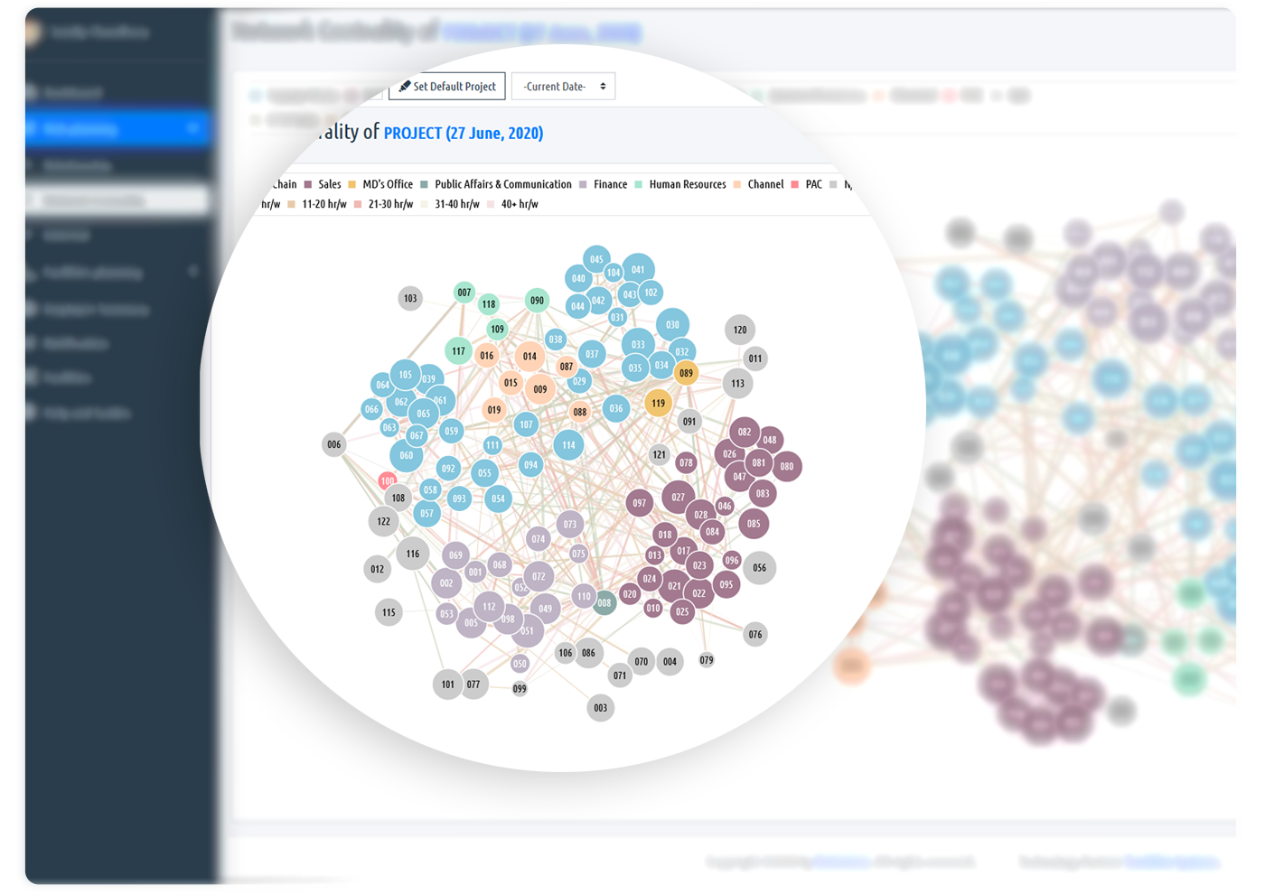 Visual rendering of the organization network map with search and filters for an intuitive understanding of the system